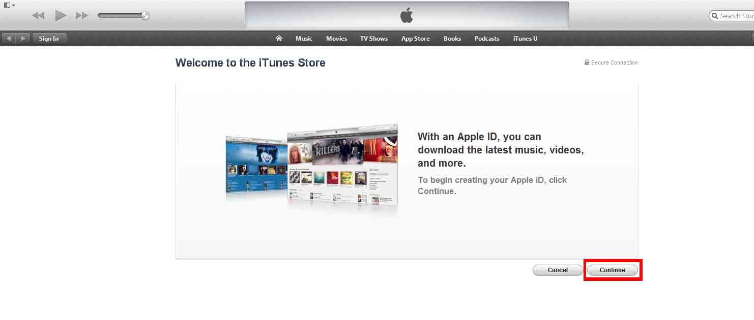مطابق شکل بالا روی iTunes Store کلیک کنید.